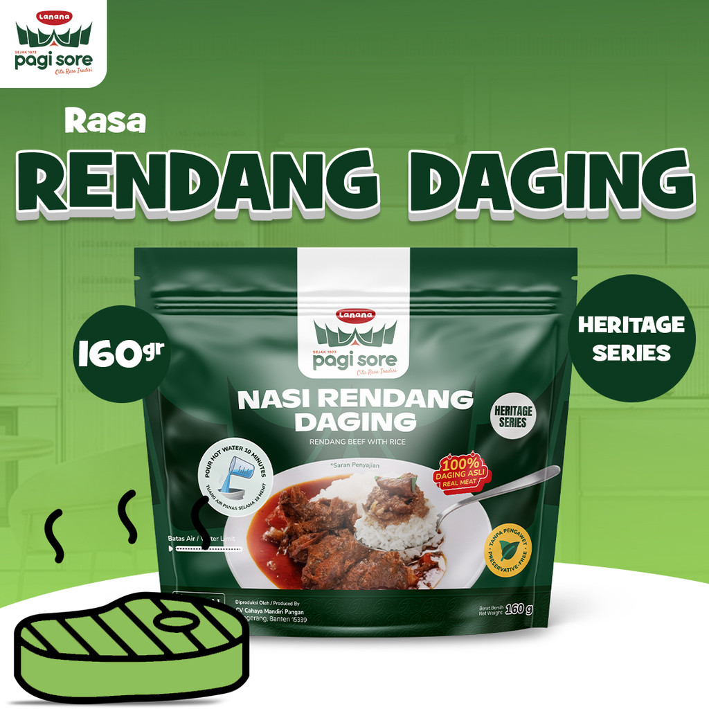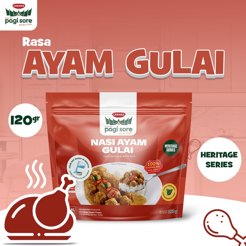 LANANA Pagi Sore - Nasi Lauk Instan Daging Rendang / Daging Cincang / AYAM KARI / AYAM POP 120 GRAM