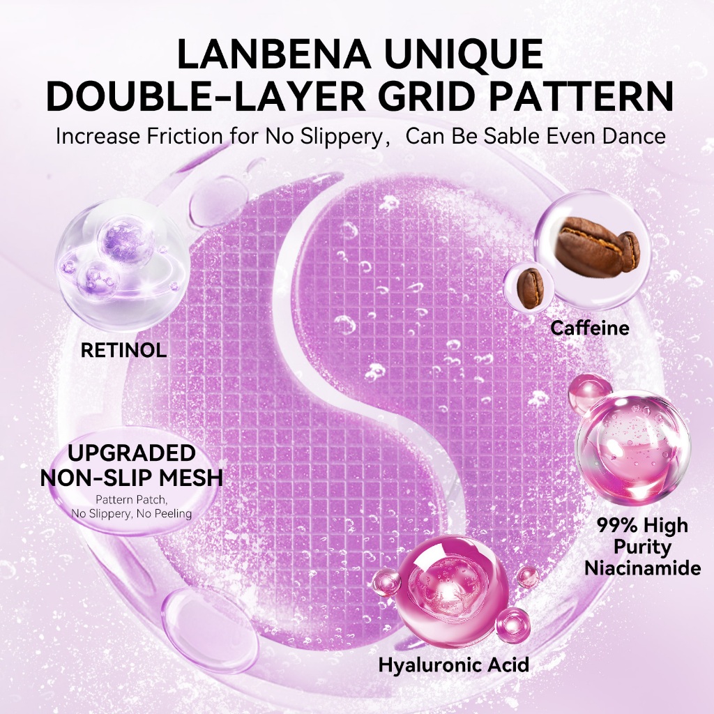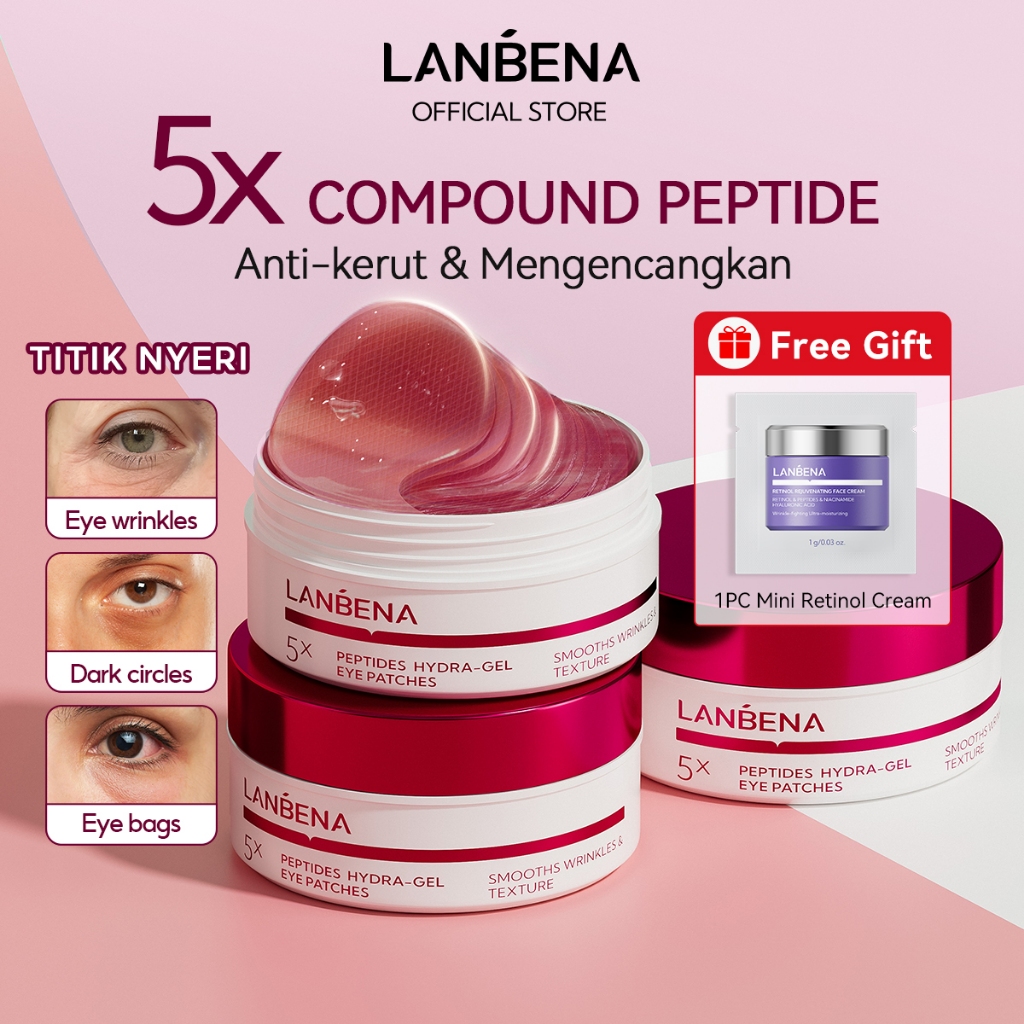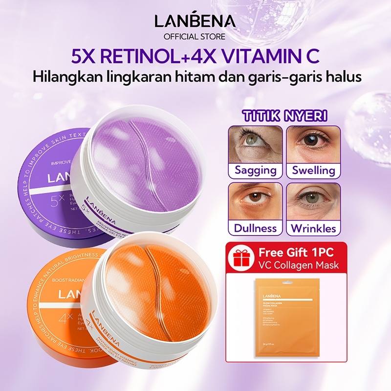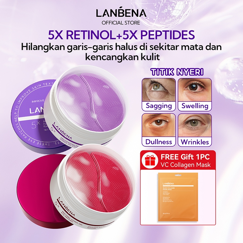 [HALAL] LANBENA Masker Mata Retinol Youthful (60Pcs/30Pairs) - Mencerahkan Mata Panda dan Kantung Mata, Menyamarkan Garis Halus, Eye Patch dan Masker Wajah Skincare