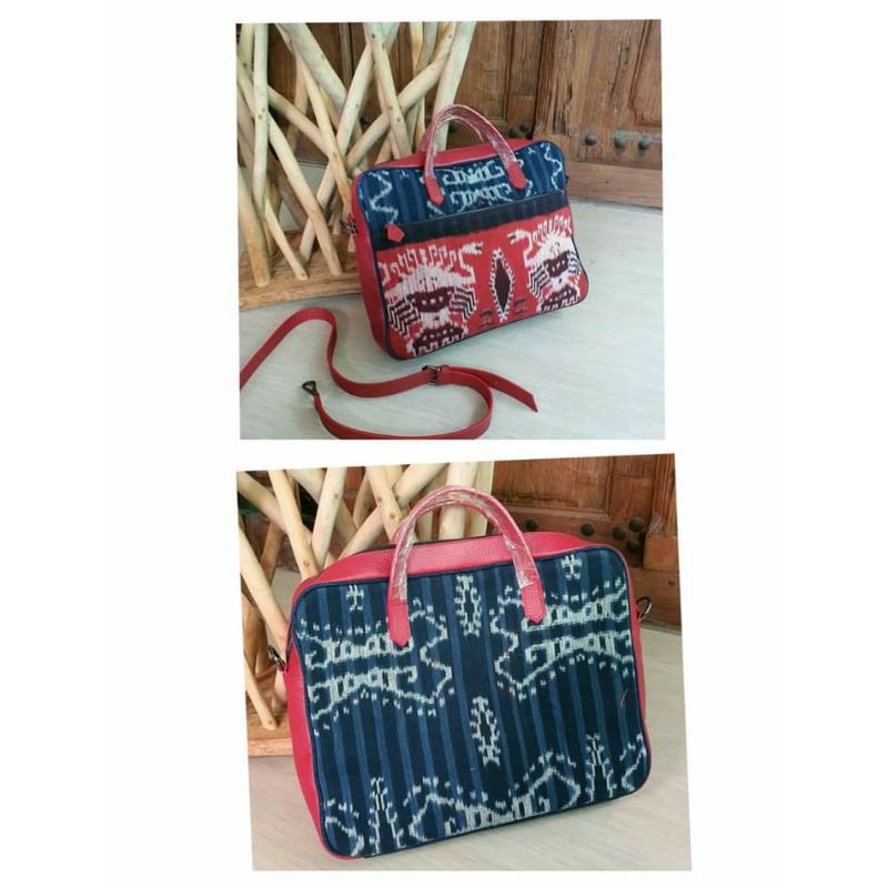LAPPY BAG TAS LAPTOP JINJING, TAS LAPTOP TENUN MIX KULIT ASLI, TAS LAPTOP ETNIK, TAS LAPTOP KULIT