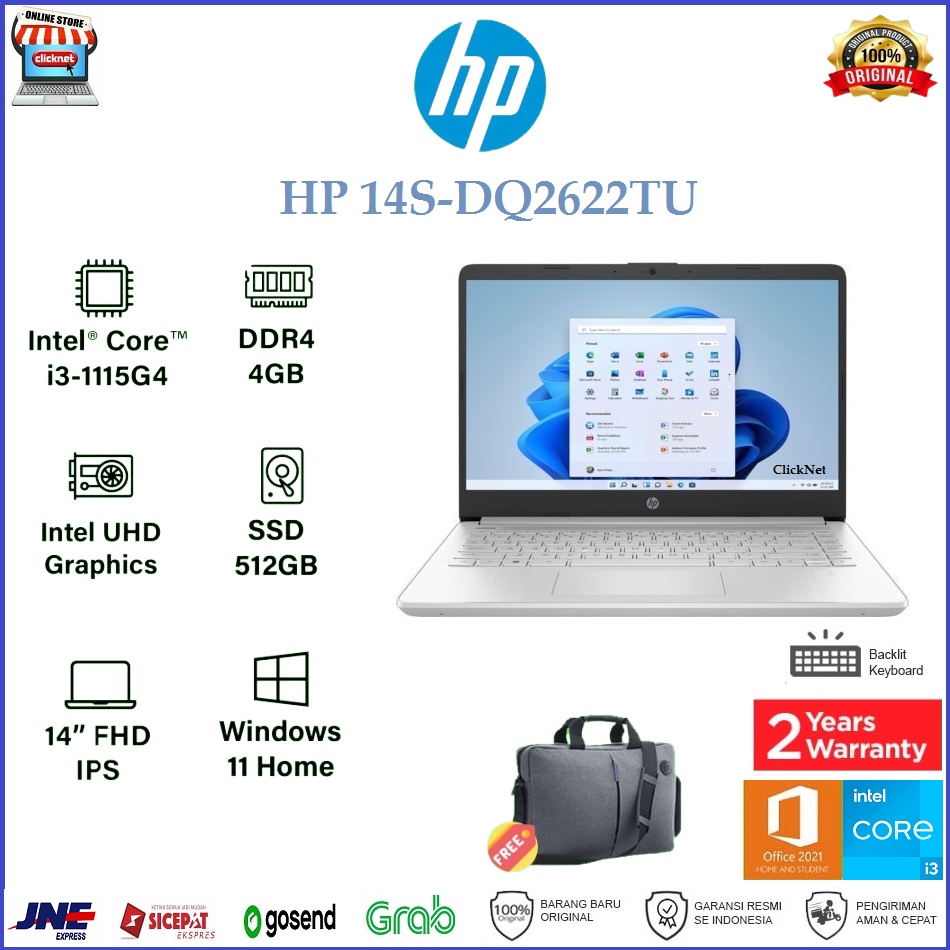 LAPTOP HP 14S-DQ2622TU i3-1115G4 4GB 512GB SSD FHD IPS WIN11 OHS