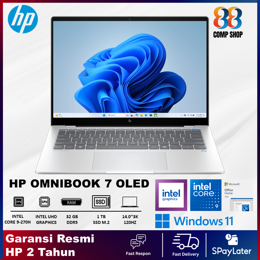 HP OMNIBOOK 7 OLED 14 CORE 9 270H 32GB 1TB W11+OHS+M365B 14.0 3K 120HZ 2Y+ADP SLV -FS0999TU
