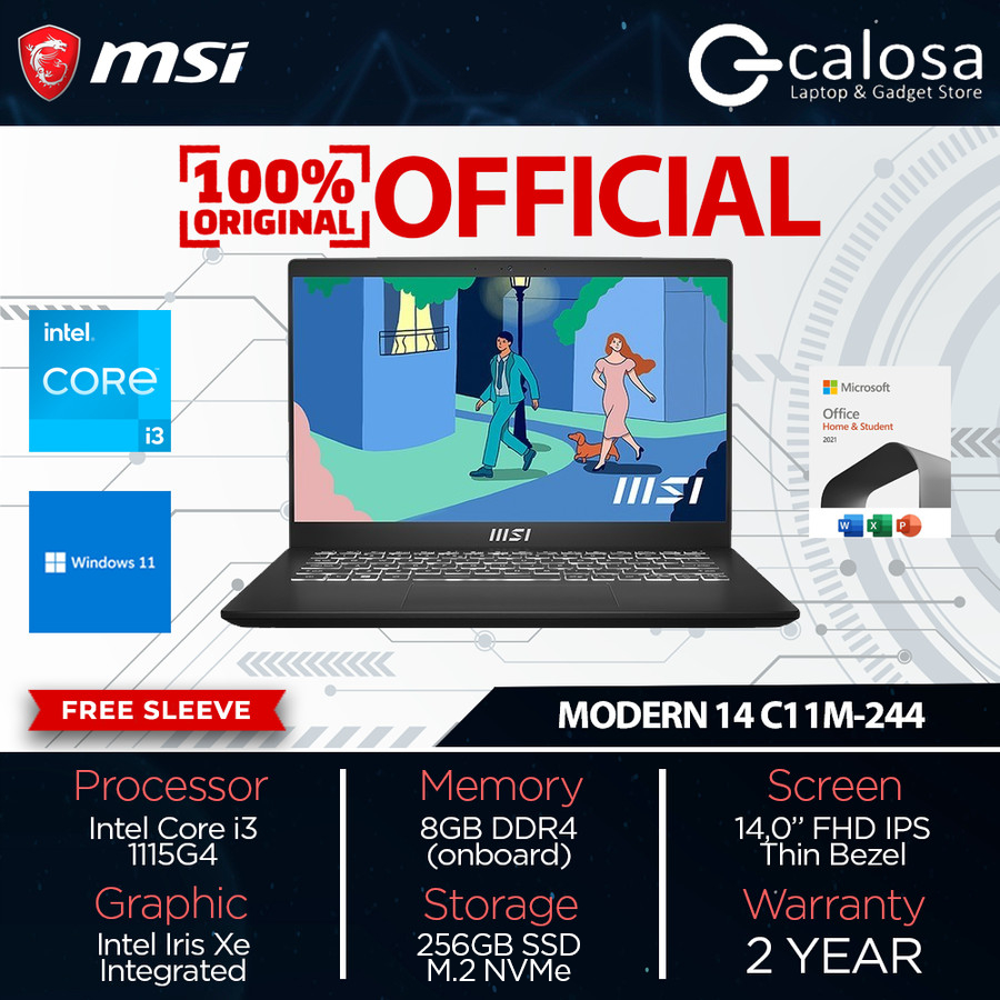 LAPTOP MSI MODERN 14 C12M 9S7-14J111-1246 / C12M 9S7-14J112-1058 / C12MO 9S7-14J112-1288 Intel Core I3 1215U RAM 8GB SSD 512GB 14" FULL HD IPS WINDOWS 11 ORIGINAL MICROSOFT OFFICE HOME STUDENT 2021 SEKOLAH KULIAH KERJA