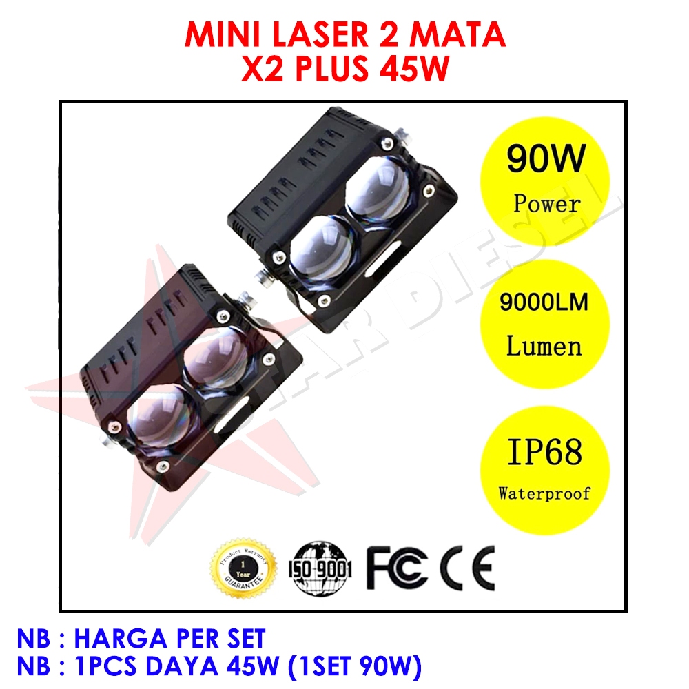LASER 2 MATA X2 PLUS MATRIX SENLO HI LO LENSA KACA LED DUA WARNA DRIVING LIGHT MINI LASER CLEAR LENS