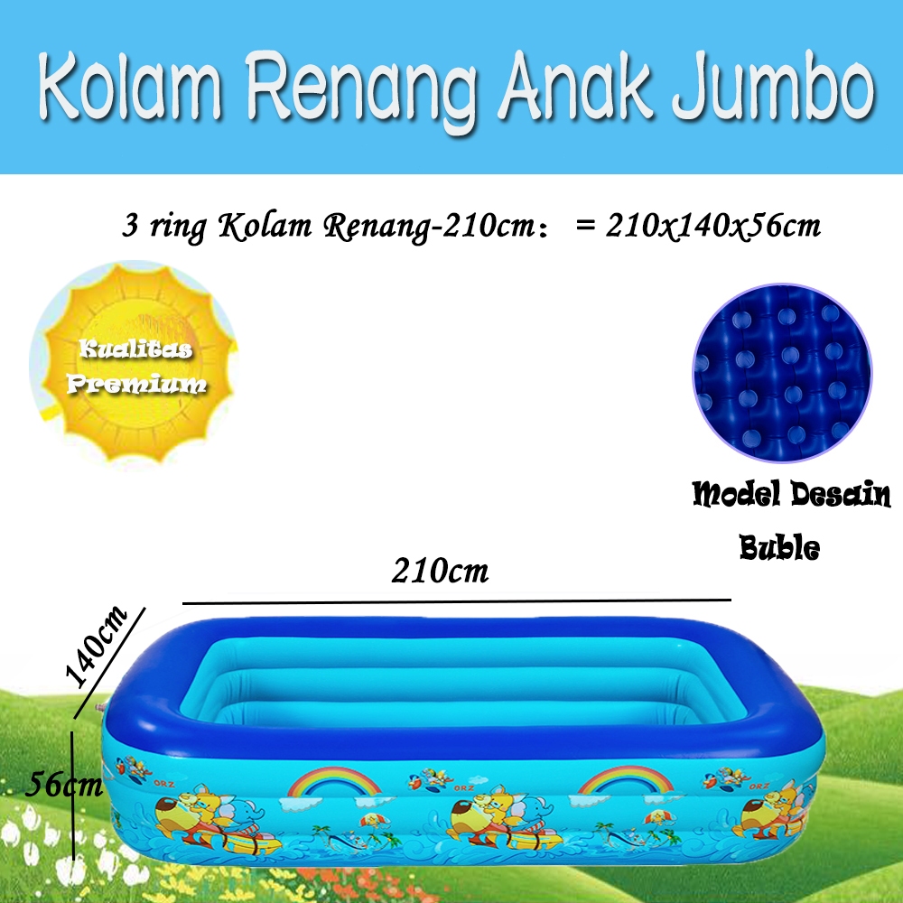 LATATL Kolam Renang Anak Jumbo / Kolam Berenang Anak / Kolam Mandi Bola Anak / Inflatable Swimming Pool / Kolam Mandi Anak PVC Jumbo 3ring Portable