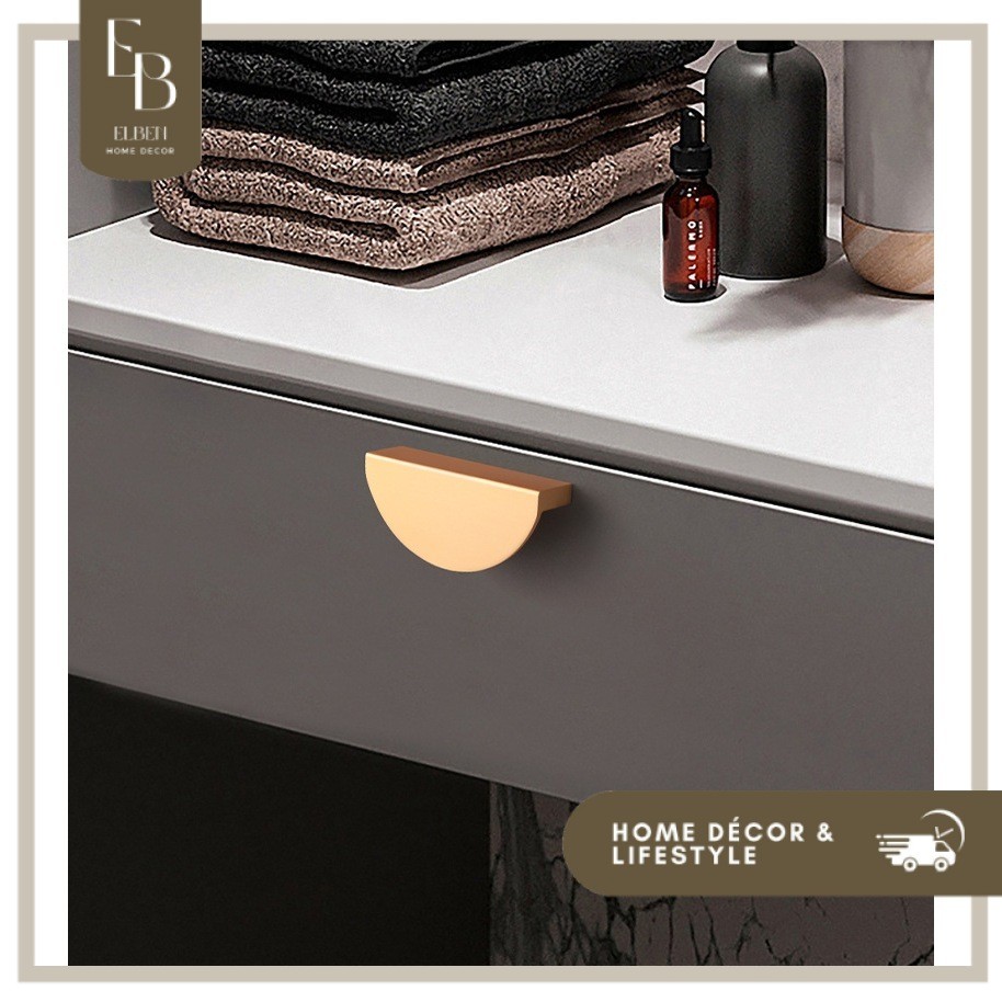 LAVINIA Handle lemari Gold / Tarikan Laci Semi Circular / handle lemari black gold