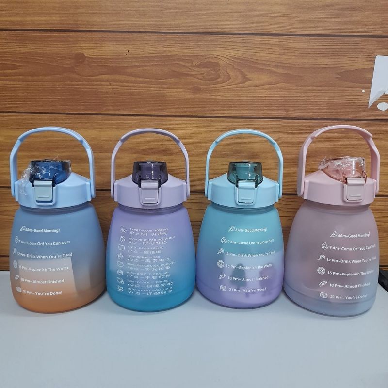 LC - Botol Minum 2 Liter Botol Minum Viral / Botol Pelangi Botol Minum Motivasi 2000 ml / Botol Minum Viral Korea free Stiker 2D