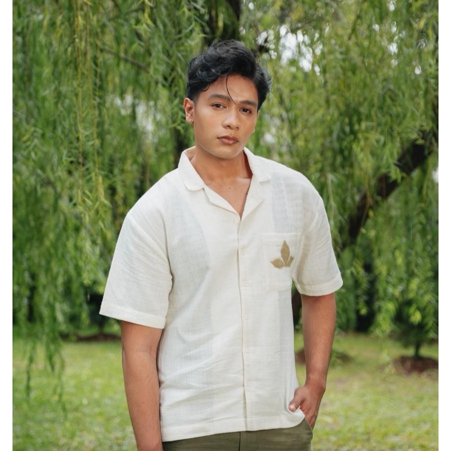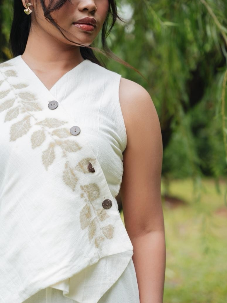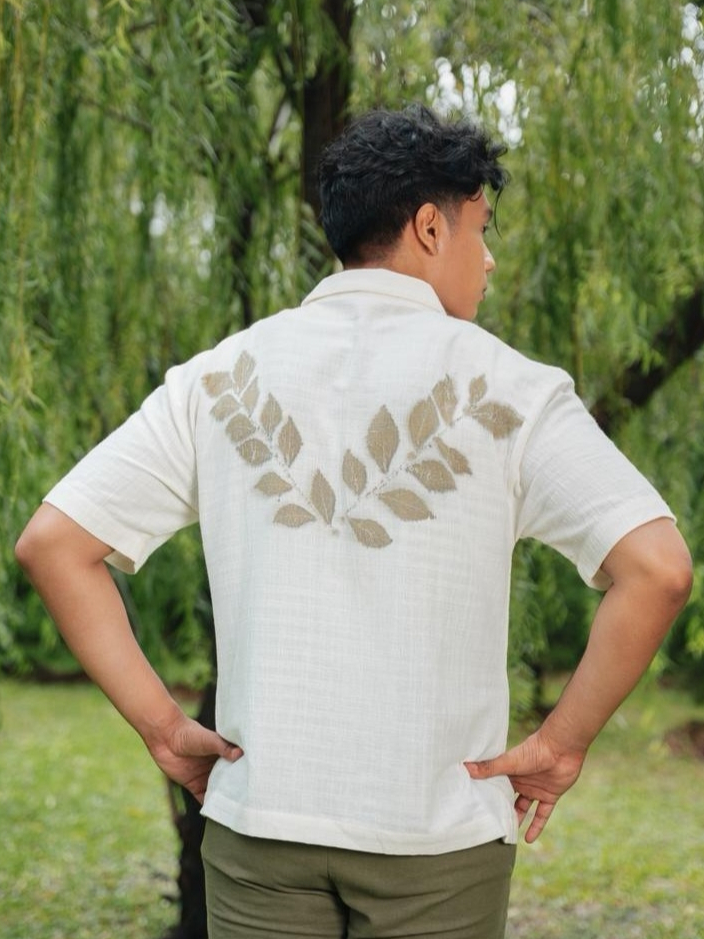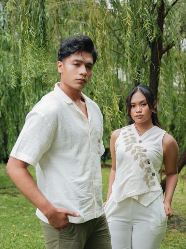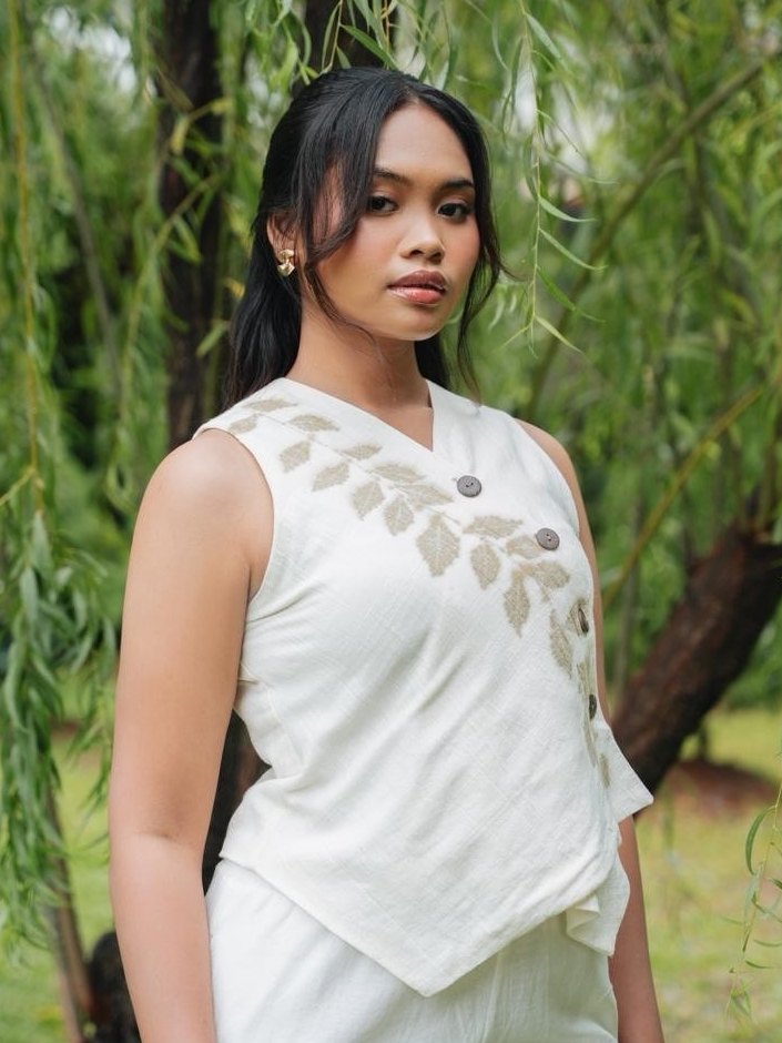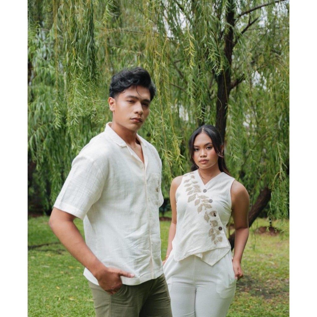 LEAFÉ - Naung Laras Set Couple White Premium Ecoprint | Atasan Kemeja Pria Putih | Vest Wanita Putih