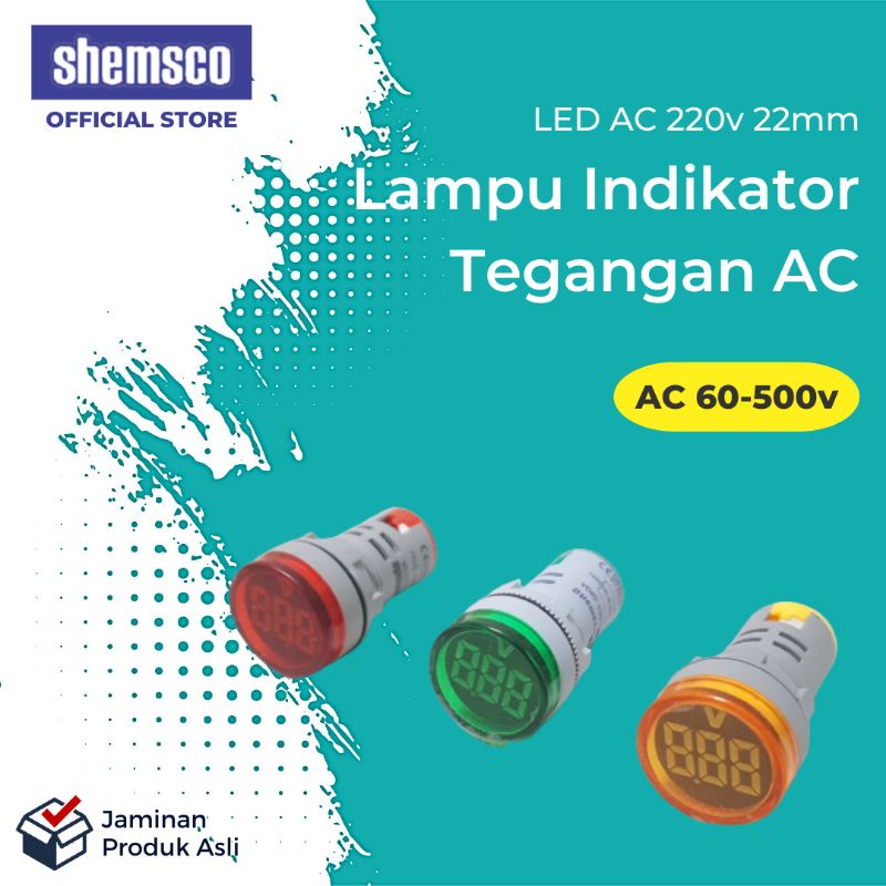 LED 220v AC Pilot Volt Ampere Hz Meter 22mm Lampu Indikator Pengukuran Arus Tegangan Frekuensi Shemsco AD22-DA DHz DV