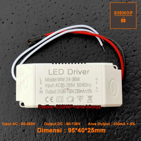 LED Driver 24W-36W DC 230mA Casing Plastik