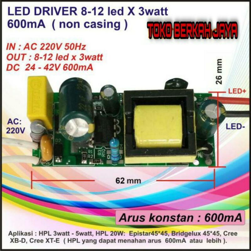 LED Driver 8-12x3 Watt 600 mA Tanpa Casing