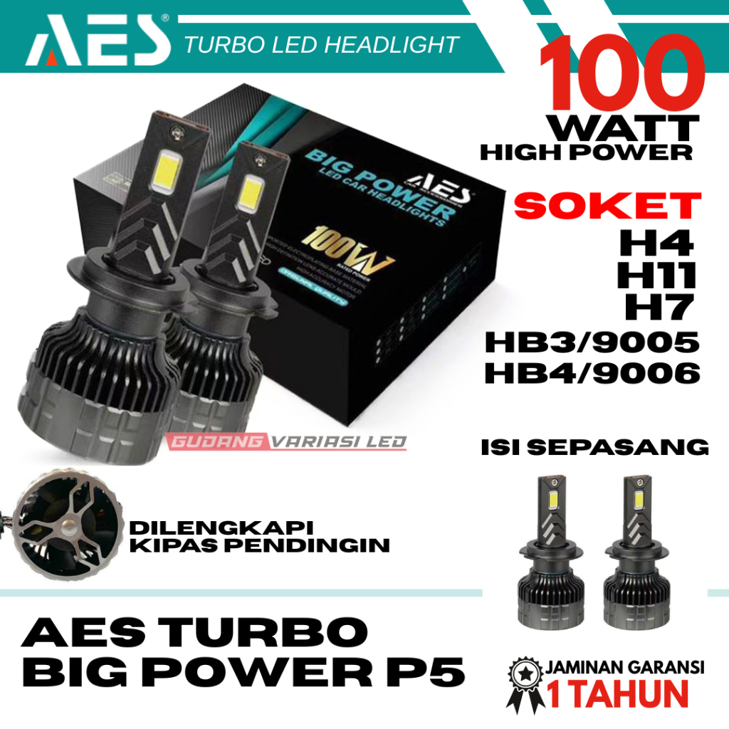 Lampu LED Turbo BIG POWER P5 Headlight H4 HB3 HB4 H7 H11100 Watt High Power AES