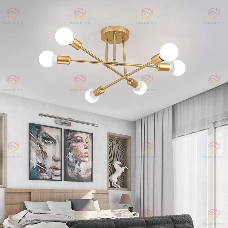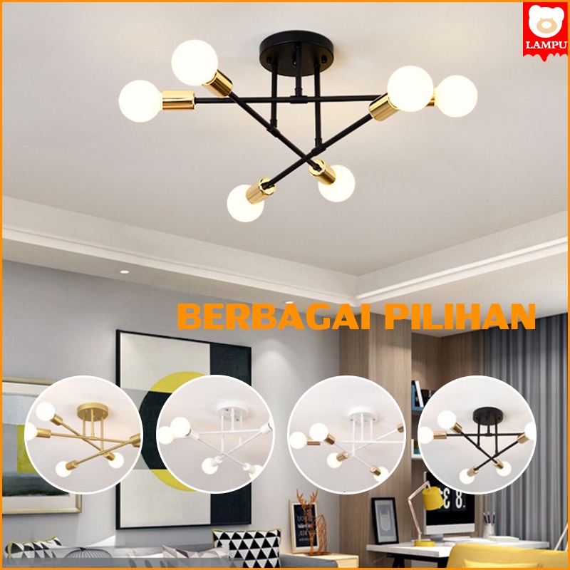 LED Lampu Besi Tempa Gaya Industri Lampu Langit-langit Minimalis Nordic Lampu Laba-laba Berkepala Banyak Lampu