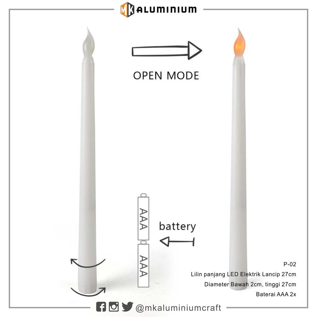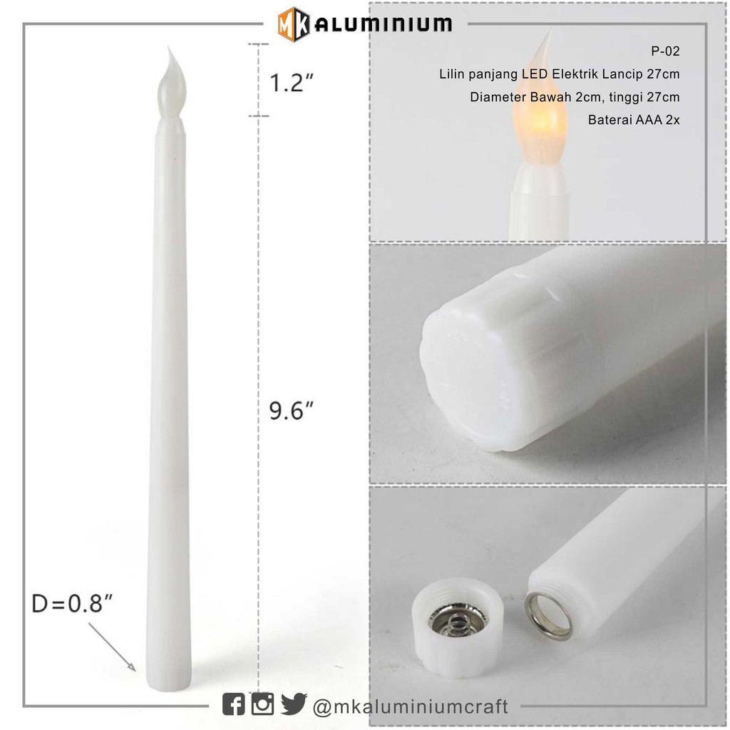 LED Lilin Elektrik LED lancip 27cm - Electric Candle LED - Lampu Lilin - Lilin Lampu - MK Aluminium