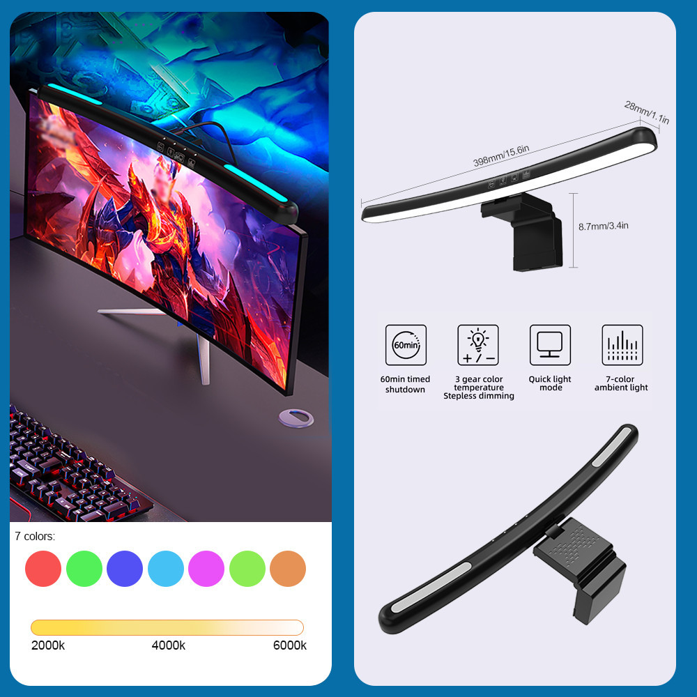 LED Monitor Light Bar RGB Screen Hanging Lights Curved Screen Monitor USB Reading Gaming Lighting Eye-Care Stepless Dimming