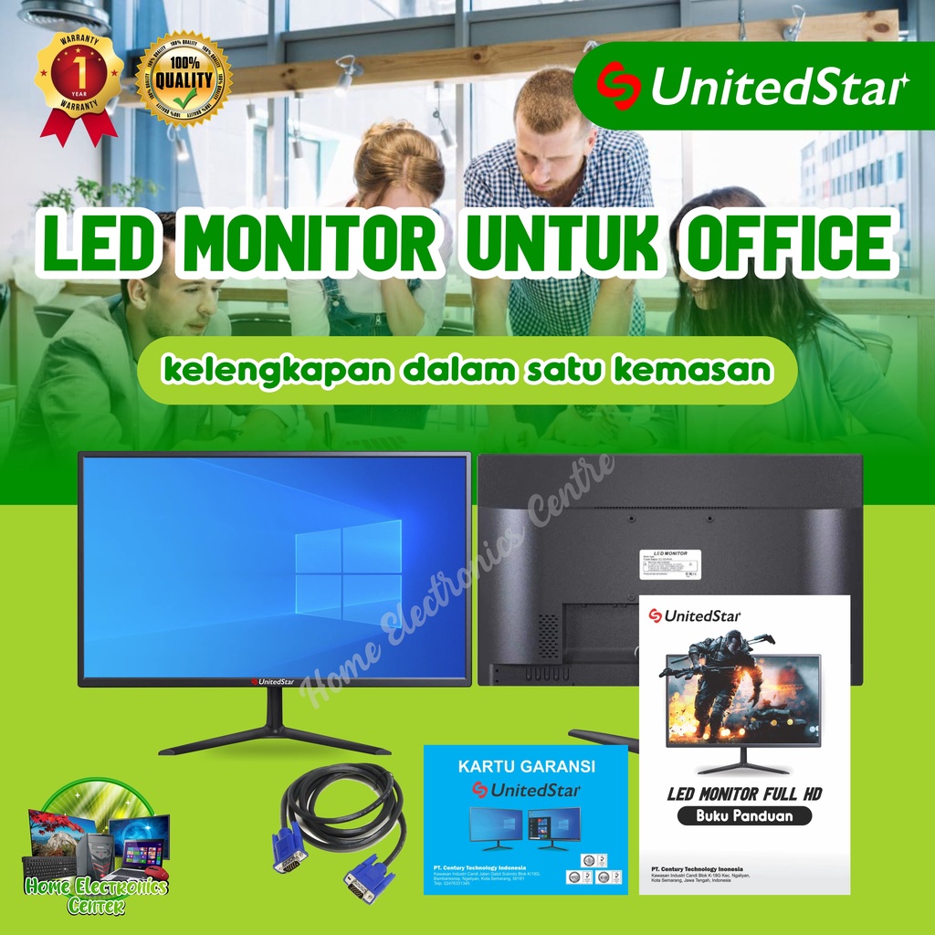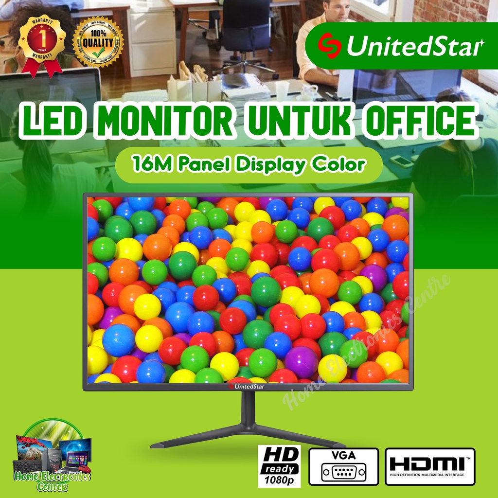 LED Monitor Terbaru-Termurah-United Star-US-20W-Garansi Resmi 1 Tahun-Monitor Office/Kantor-Full HD-Low-Watt-High Quality-Simple Installation