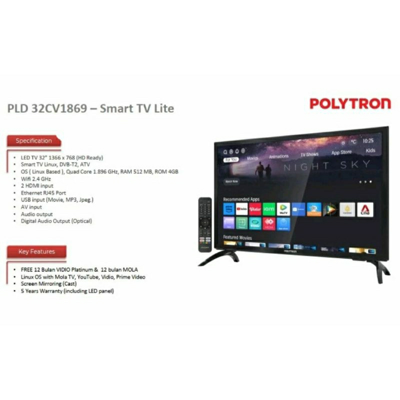LED POLYTRON 32 INCH SMART TV PLD 32CV1869/POLYTRON LED 32 INCH SMART TV/LED TV POLYTRON 32 INCH SMART TV/SMART TV LED POLYTRON 32 INCH