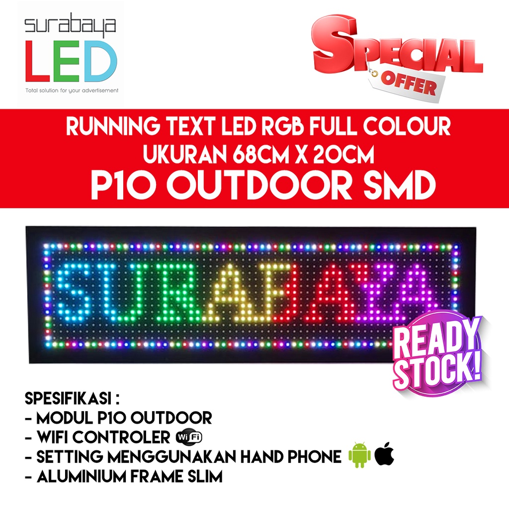 LED Running text RGB full colour ukuran 68x20cm wifi outdoor