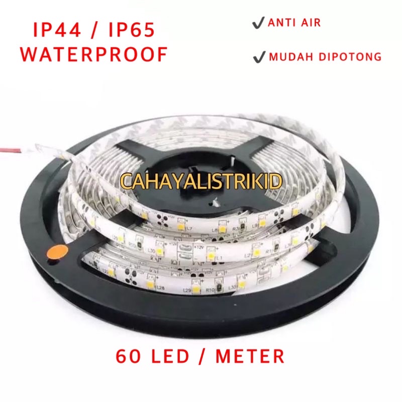 LED STRIP 3528 IP44 DC 12V 5M WATERPROOF LAMPU PLAFON LAMPU ETALASE TAHAN AIR