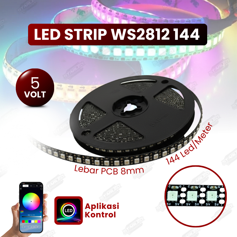 LAMPU LED STRIP WS2812b 144 LED ALIS RGB 5V PER METER