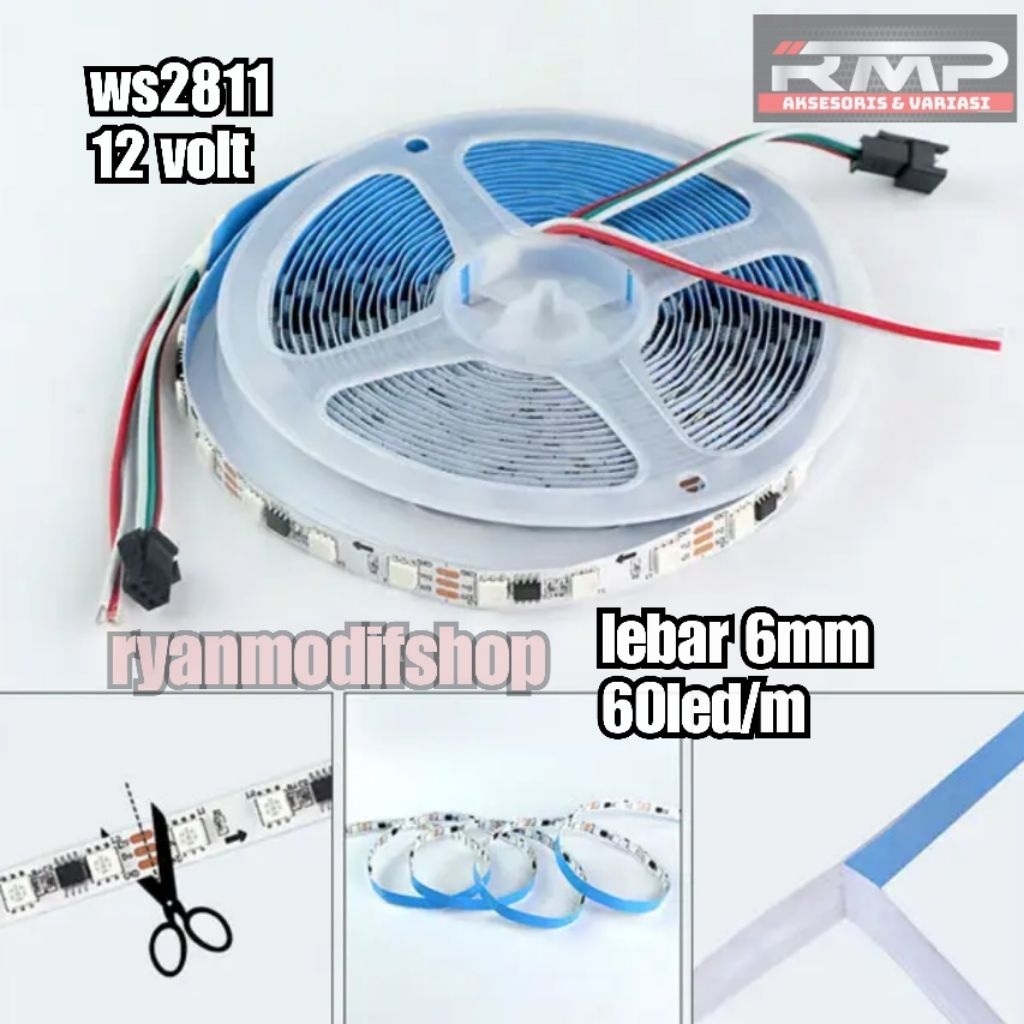 LED Strip WS2811 12V pcb putih 6mm 60led/m addressable