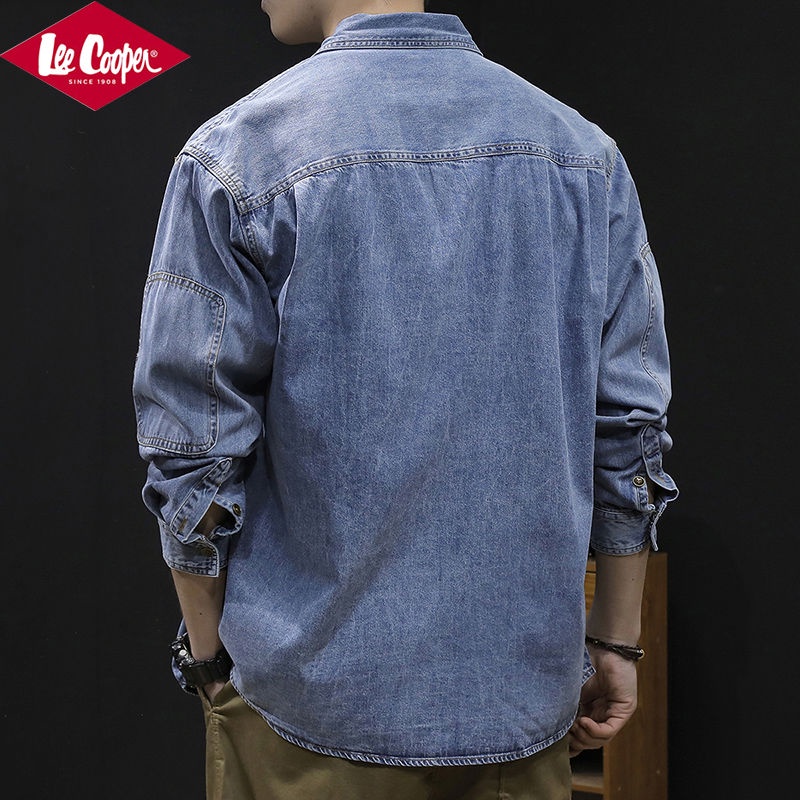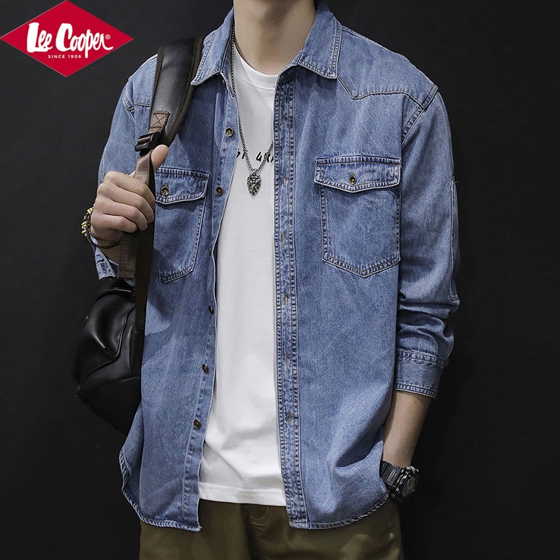 LEE COOPER kemeja denim tipis pria tampan jaket kasual longgar trendi lengan panjang kemeja denim pria