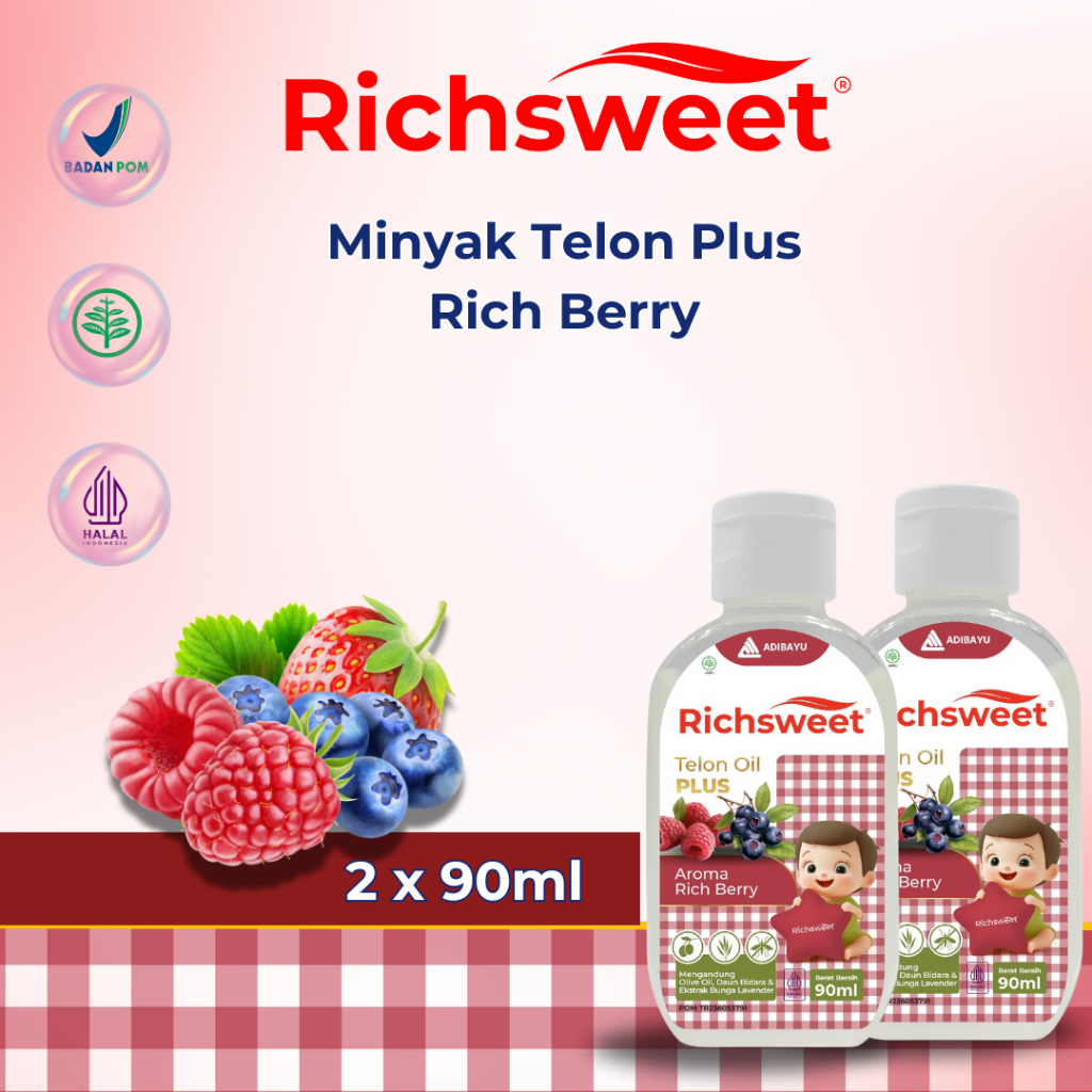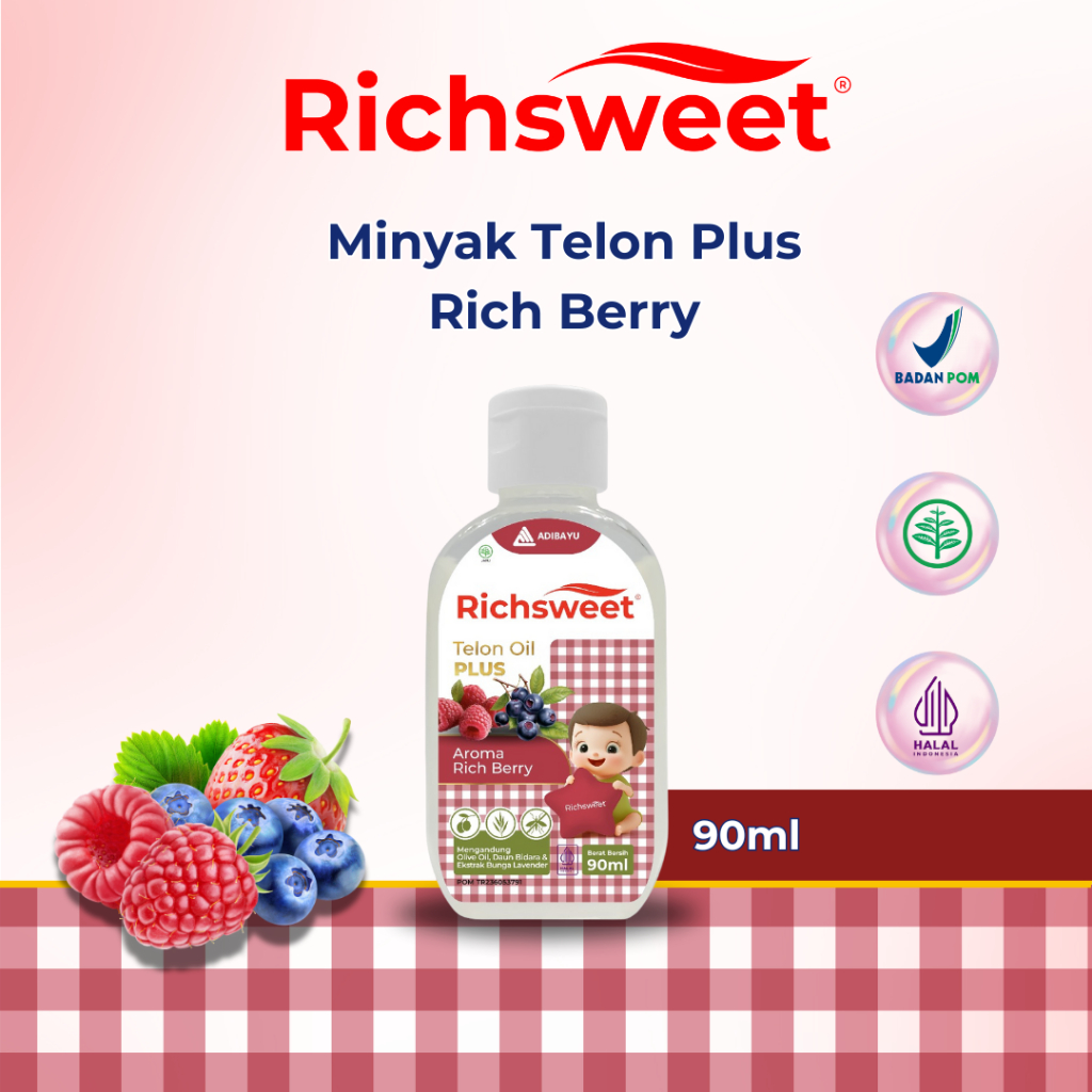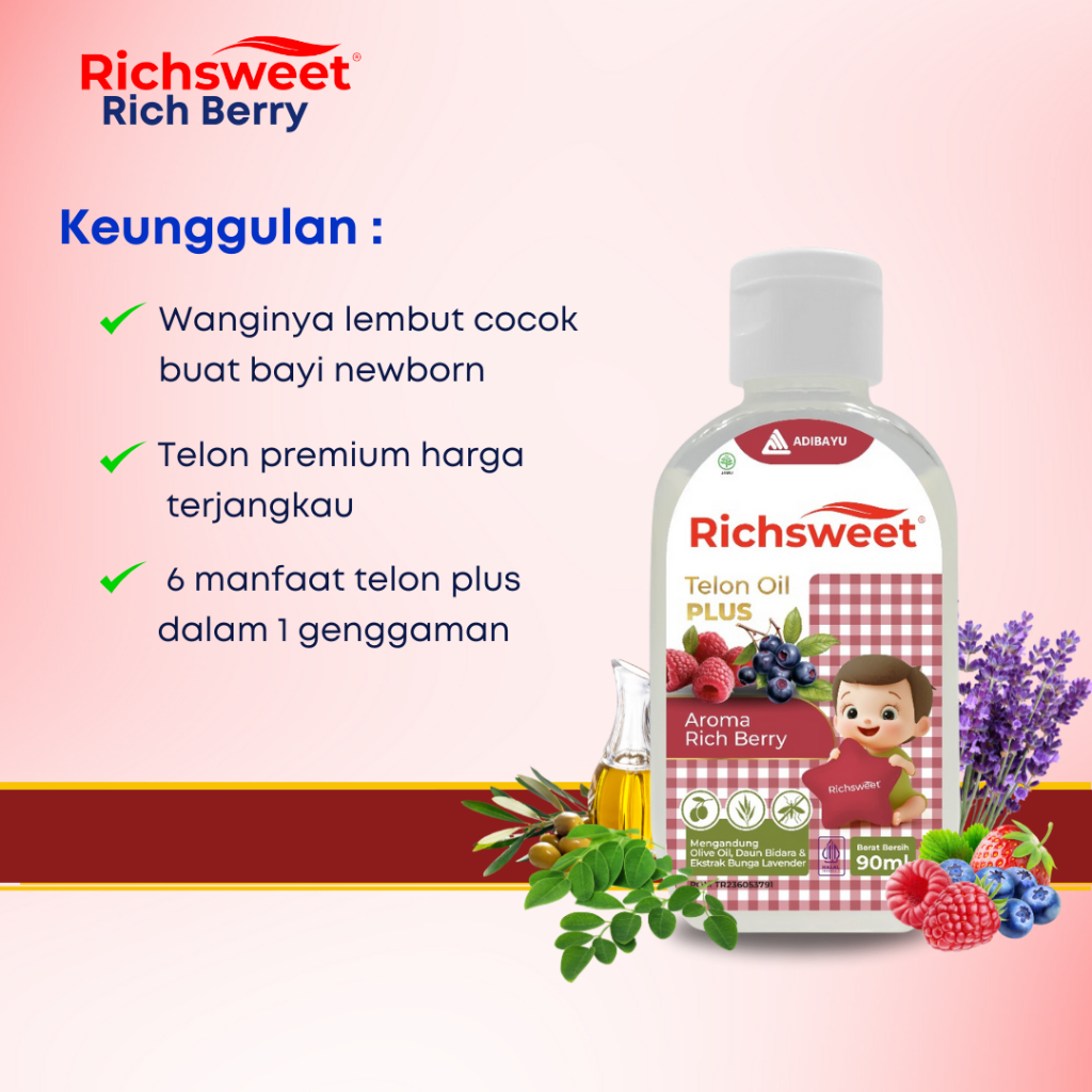 Lega To Richsweet Minyak Telon Plus Aroma Rich Bery 90ml | Perlindungan 12 Jam Anti Nyamuk + Bidara