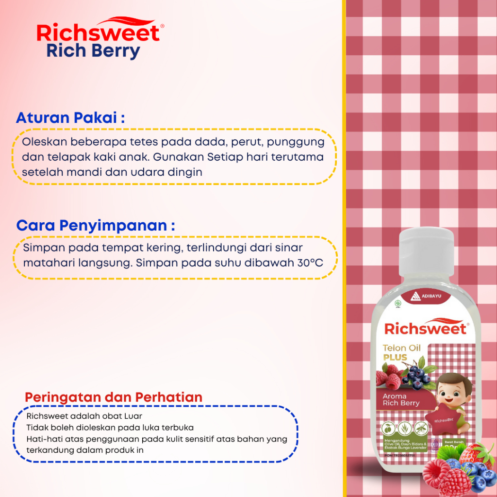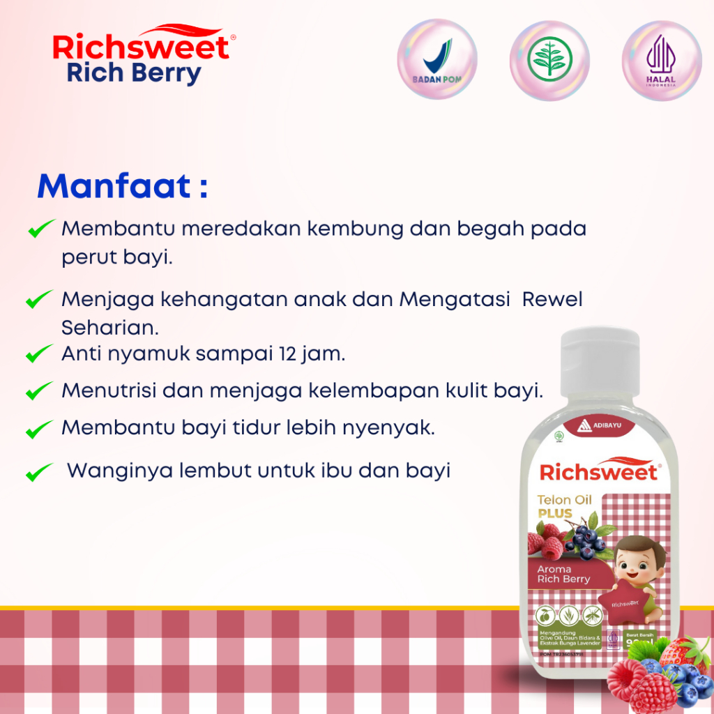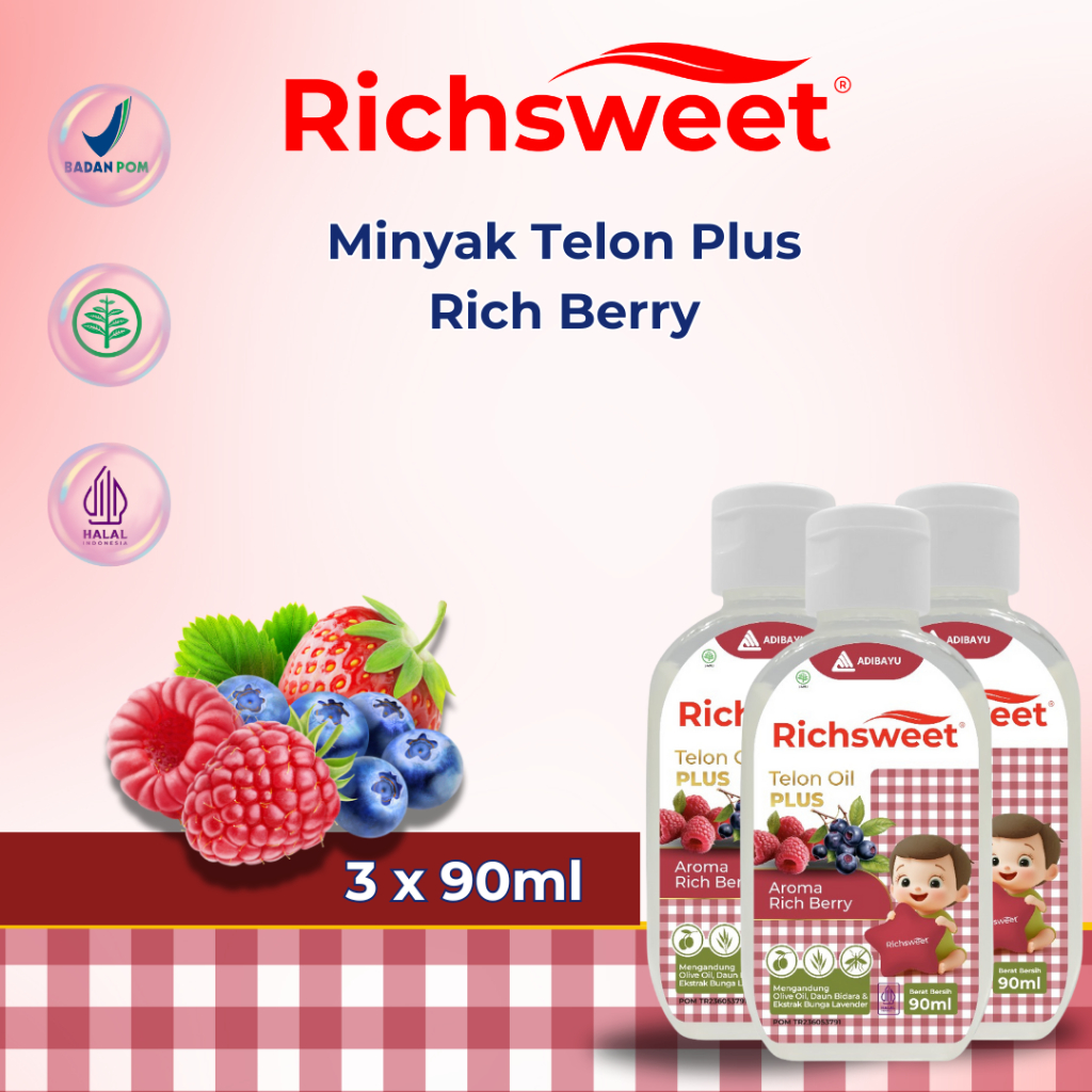 Lega To Richsweet Minyak Telon Plus Aroma Rich Bery 90ml | Perlindungan 12 Jam Anti Nyamuk + Bidara