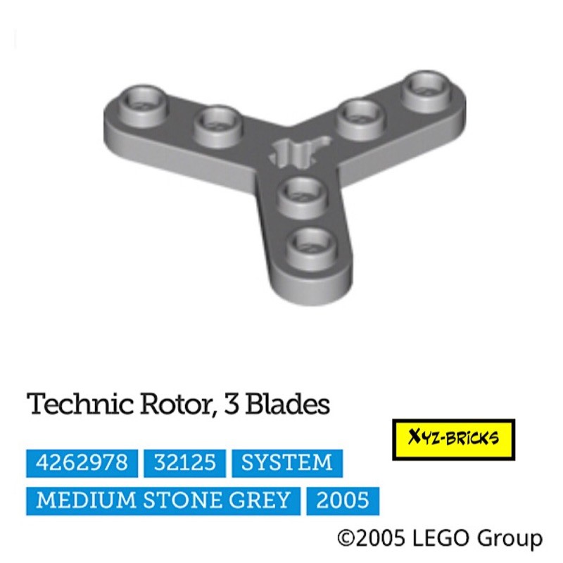 LEGO PARTS 4262978 - Technic Rotor 3 Blades Medium Stone Grey - LBG