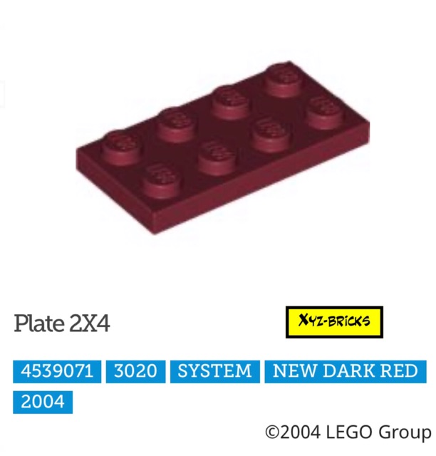 LEGO PARTS 4539071 - Plate 2x4 New Dark Red