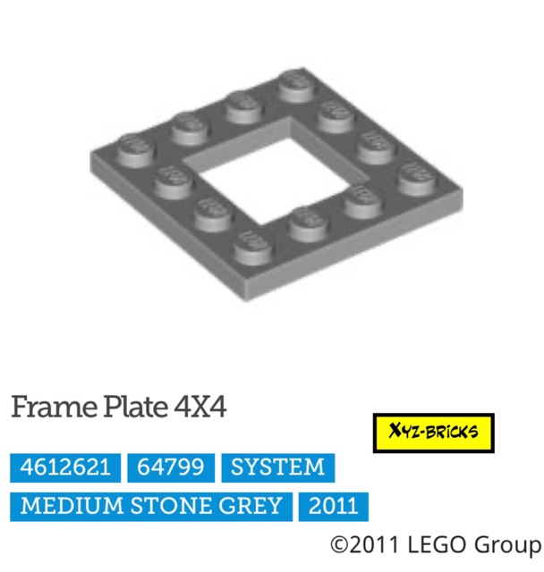 LEGO PARTS 4612621 - Frame Plate 4x4 Medium Stone Grey - LBG