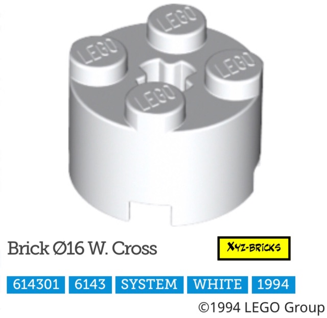 LEGO PARTS 614301 - Round Brick 2x2 Dia 16 with Cross White