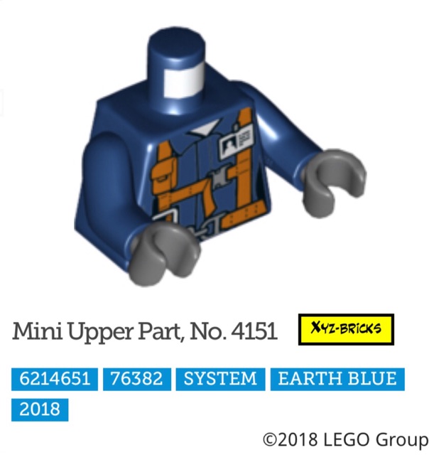 LEGO PARTS 6214651 Torso - Mini Upper Part No. 4151 Earth Blue