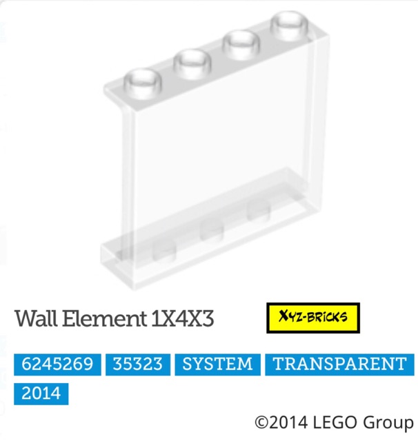 LEGO PARTS 6245269 - Wall Element 1x4x3 Transparent