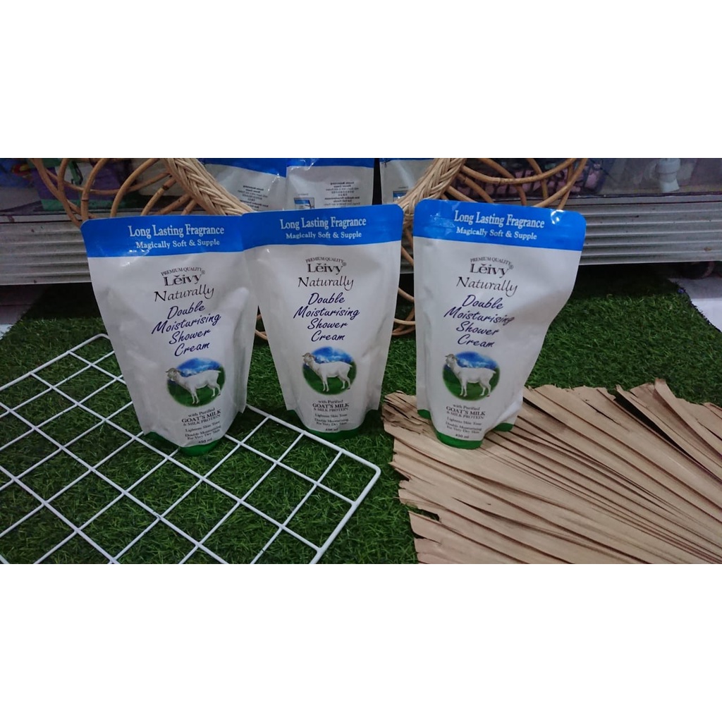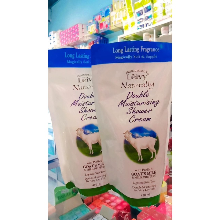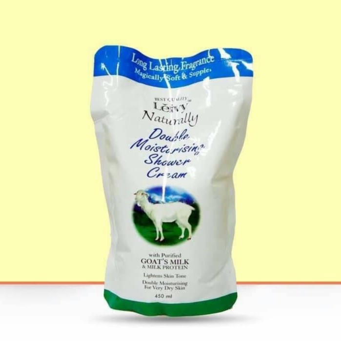 LEIVY SHOWER CREAM GOATS MILK REFILL (450 ML) - LEIVY SHOWER CREAM GOATS MILK REVIL 450 mL - SABUN MANDI DENGAN SUSU KAMBING - lEIVY SABUN CAIR 450 ML ORIGINAL - ALVA STORE