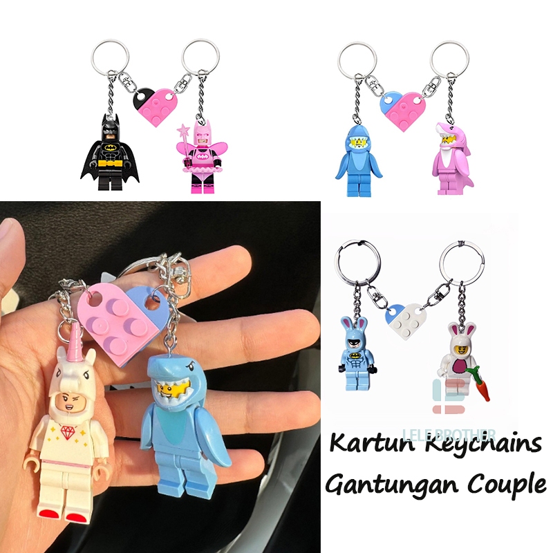 LELE BROTHER 2PCS Marvel Keychain Batman Spiderman Gantungan Kunci Couple Keychain Pink Unicorn