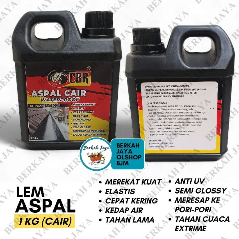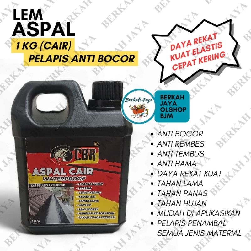 LEM ASPAL CAIR / KENTAL CBR 1 KG Lem Pelapis cat ANTI BOCOR / LEM ATAP ASPAL CAIR & KENTAL / LEM SERBAGUNA / lem Dinding Beton Tembok Waterproofing 1kg (1 liter)