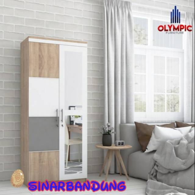 LEMARI PAKAIAN NAVARO OLYMPIC 2 PINTU CERMIN MINIMALIS