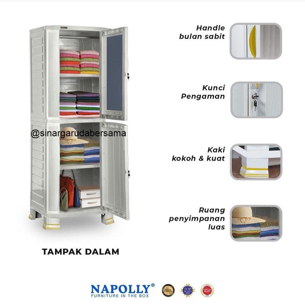 LEMARI PAKAIAN PLASTIK 1 PINTU + KACA CERMIN WARNA PUTIH TERBARU NAPOLLY CABSUL 1 - R99 C2K