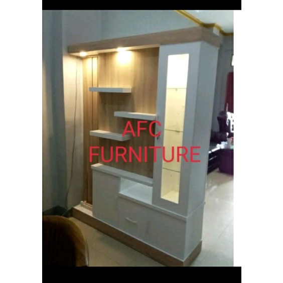 LEMARI PARTISI MINIMALIS SEKAT/PENYEKAT RUANG TAMU MODERN 2 MUKA