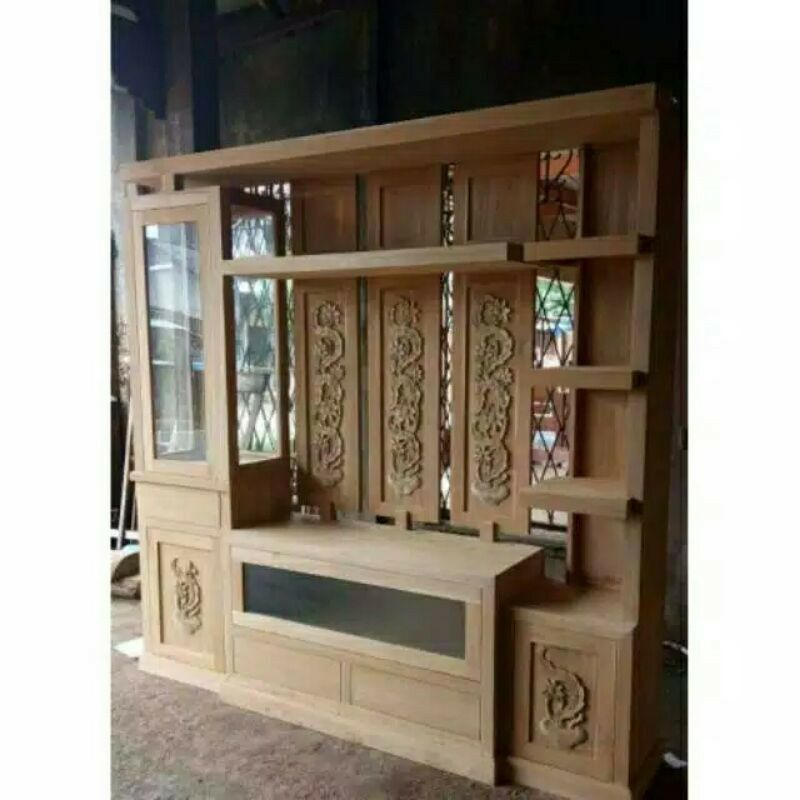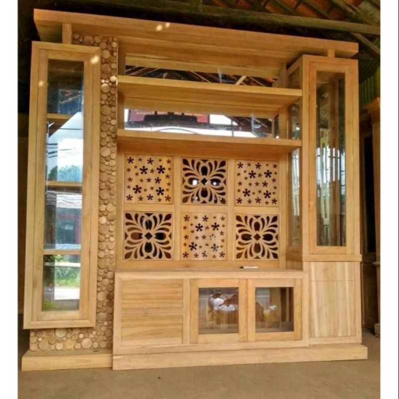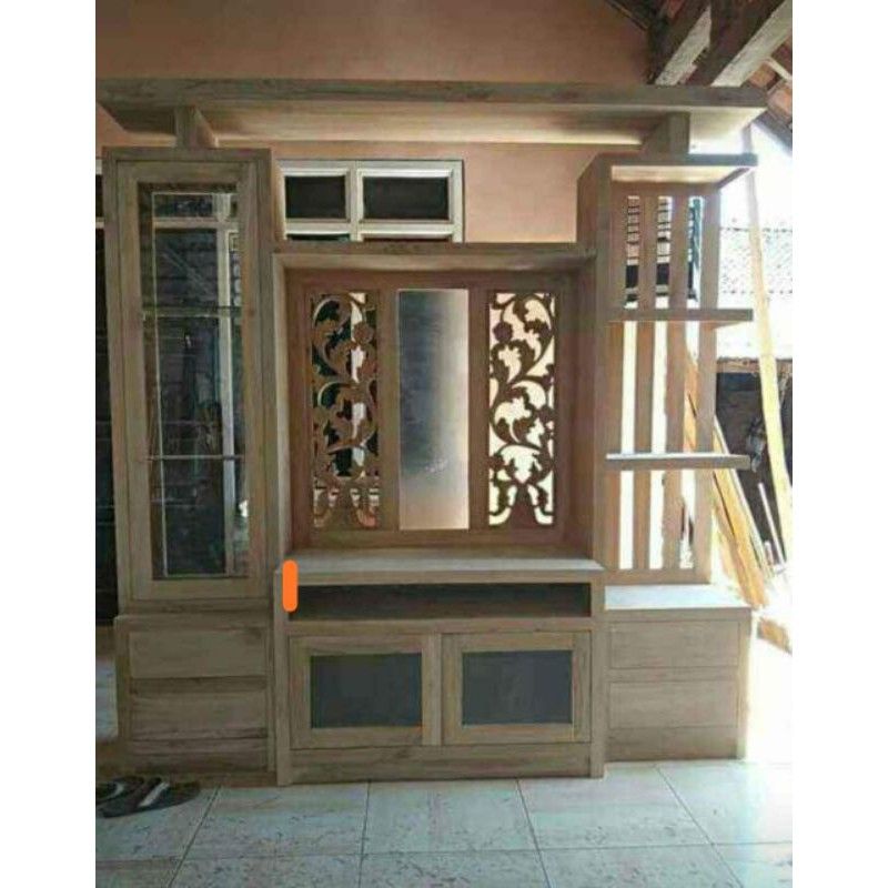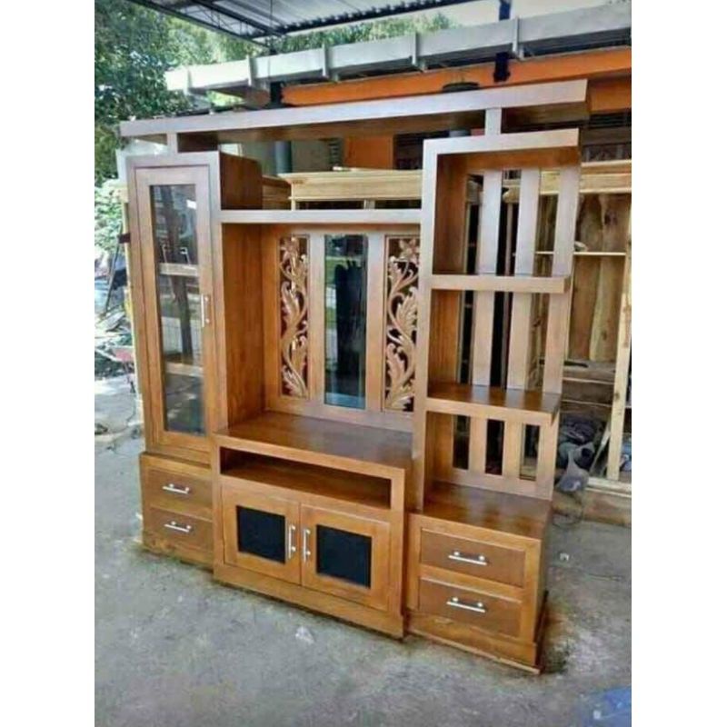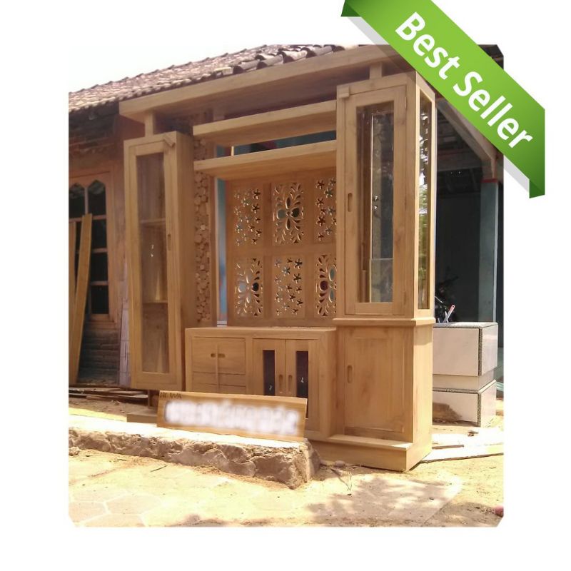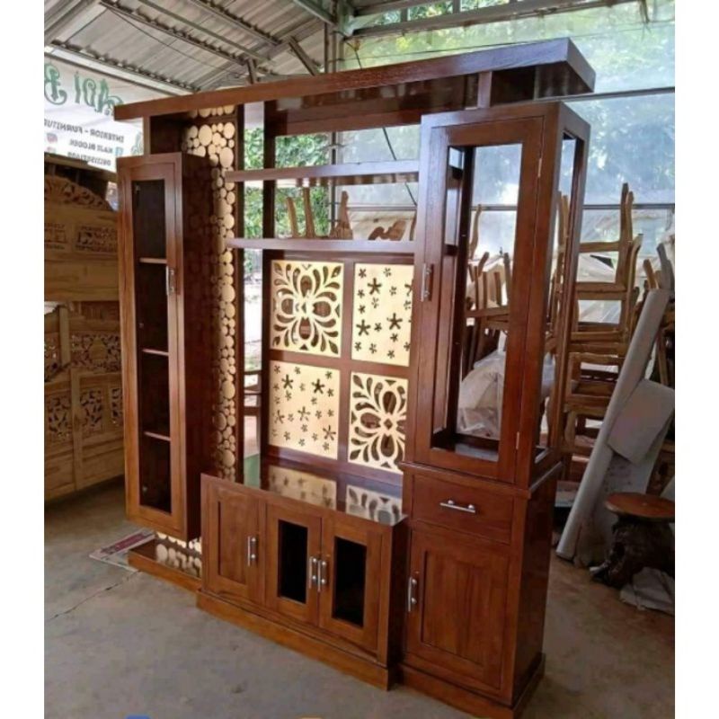 LEMARI PARTISI PENYEKAT RUANGAN MINIMALIS JATI