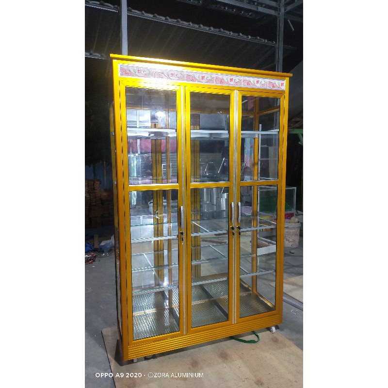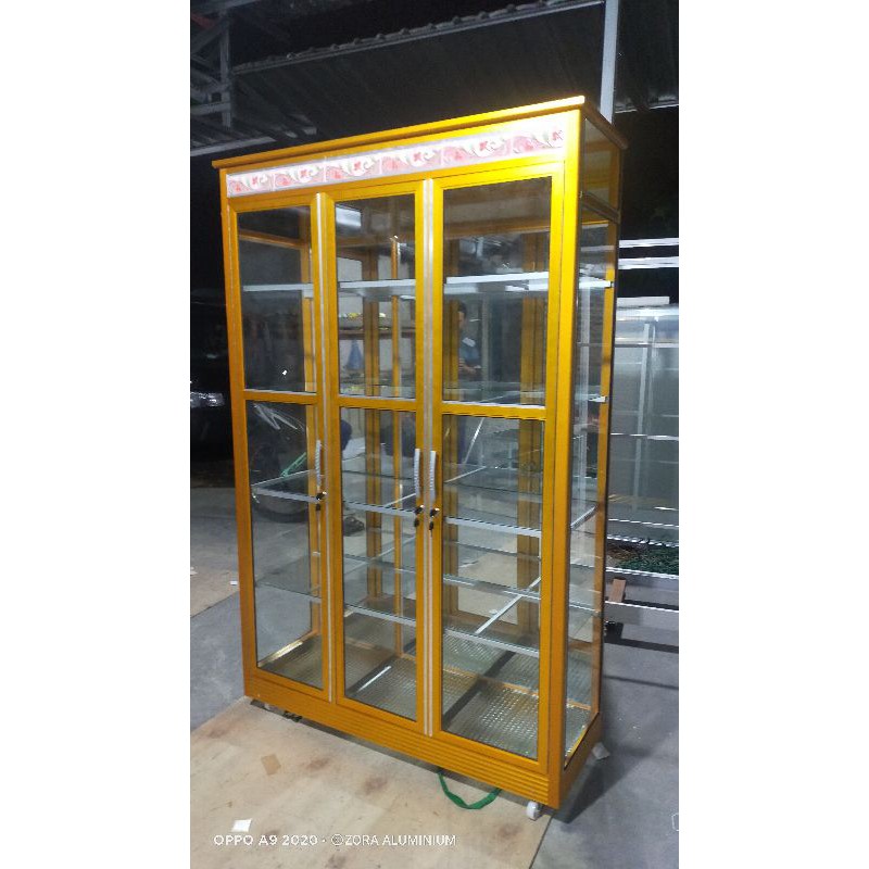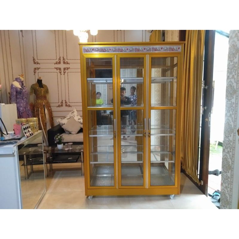 LEMARI kaca hias Aluminium bisa buat lemari display/ lemari sudut/ etalase kaca/ almari kaca