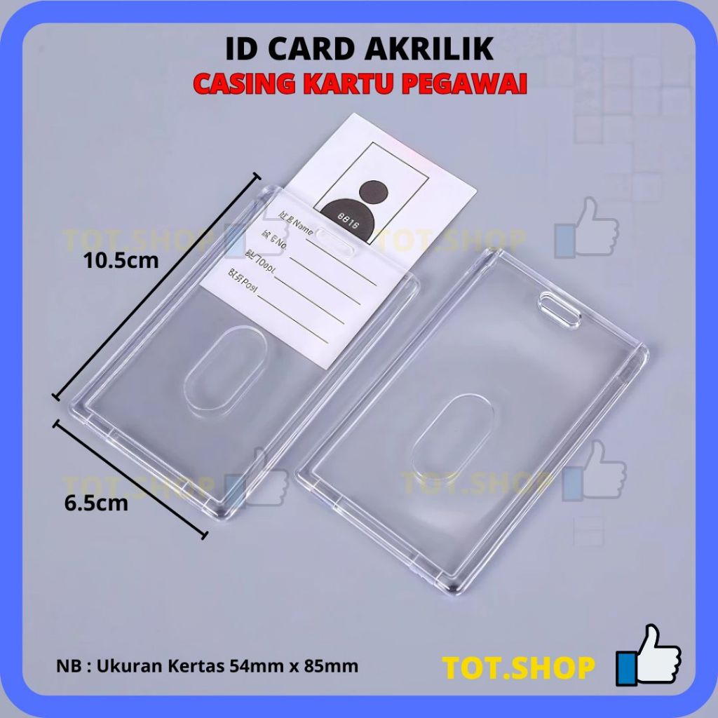 LENGKAP ID Card Holder Mika Tali Lanyard Stopper Name Tag Gantungan Tempat Wadah Kartu Nama Tebal Casing IDCard Tanda Pengenal ATM Tempat Karyawan Pegawai Kantor PLASTIK KULIT Transparan Kaca Acrylic