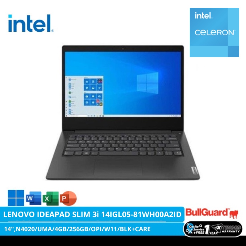 LENOVO IDEAPAD SLIM 3i 14IGL05-81WH00A2ID [14inch/Intel Cleron N4020/UMA/4GB/256GB/OHS/WIN11/BLK+CARE]