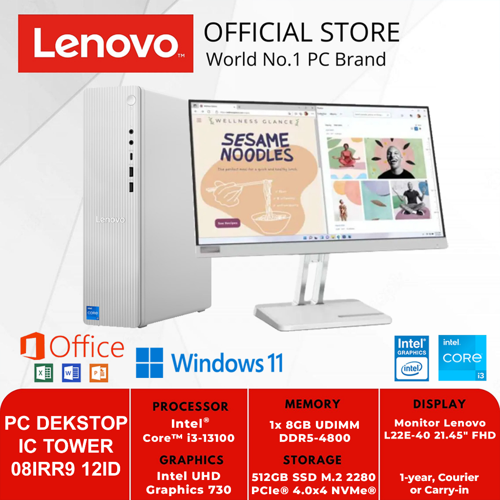LENOVO PC IDEACENTRE TOWER 08IRR9 51ID GREY INTEL CORE i3-13100 8GB 512GB WIN 11 HOME + OFFICE HOME 2024