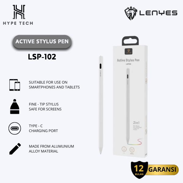 LENYES LSP-102 ACTIVE STYLUS PEN 2 IN 1 MODES ANTI-MISTOUCH CPACTIVE SCREEN PENCIL UNIVERSAL TABLETS & SMARTPHONES