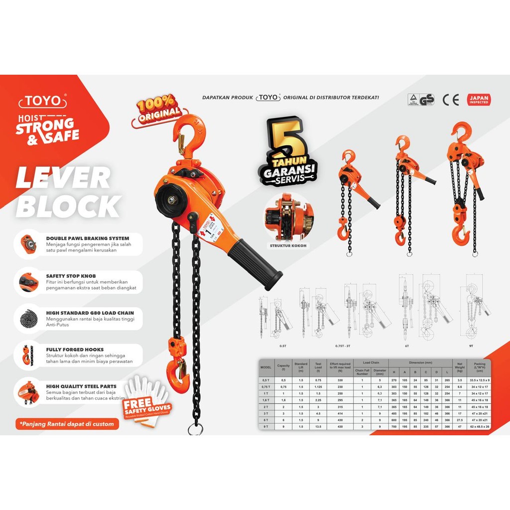 LEVER BLOCK 3 TON / LEVER HOIST (3 T X 1.5 METER, 3 T X 3 METER, 3 T X 5 METER) - TOYO