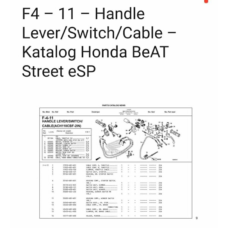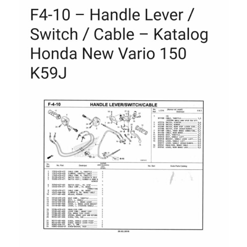 LEVER L STEERING HANDLE TUAS REM KIRI BELAKANG BEAT STREET K81 NEW SCOOPY K93 VARIO 125 150 2018-2022 53178K81N30 ORIGINAL HONDA