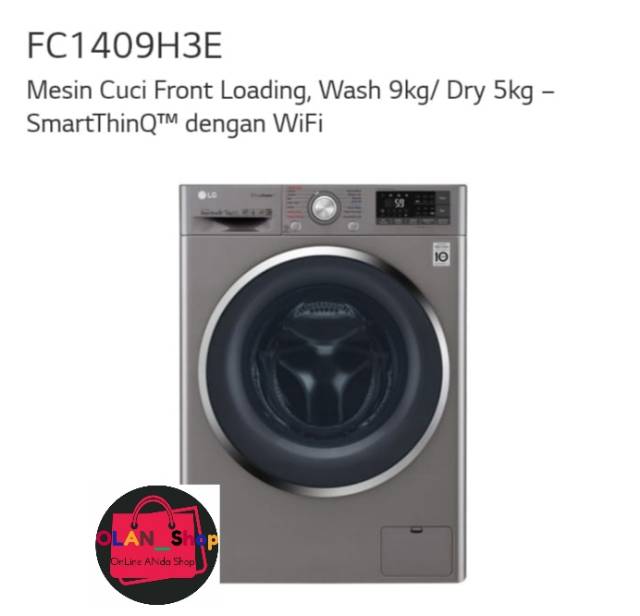 LG Front Loading Mesin Cuci Pintu Depan FC1409H3E 2in1 Wash 9kg Dryer 5kg Direct Drive Inverter