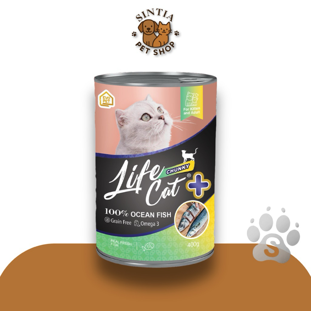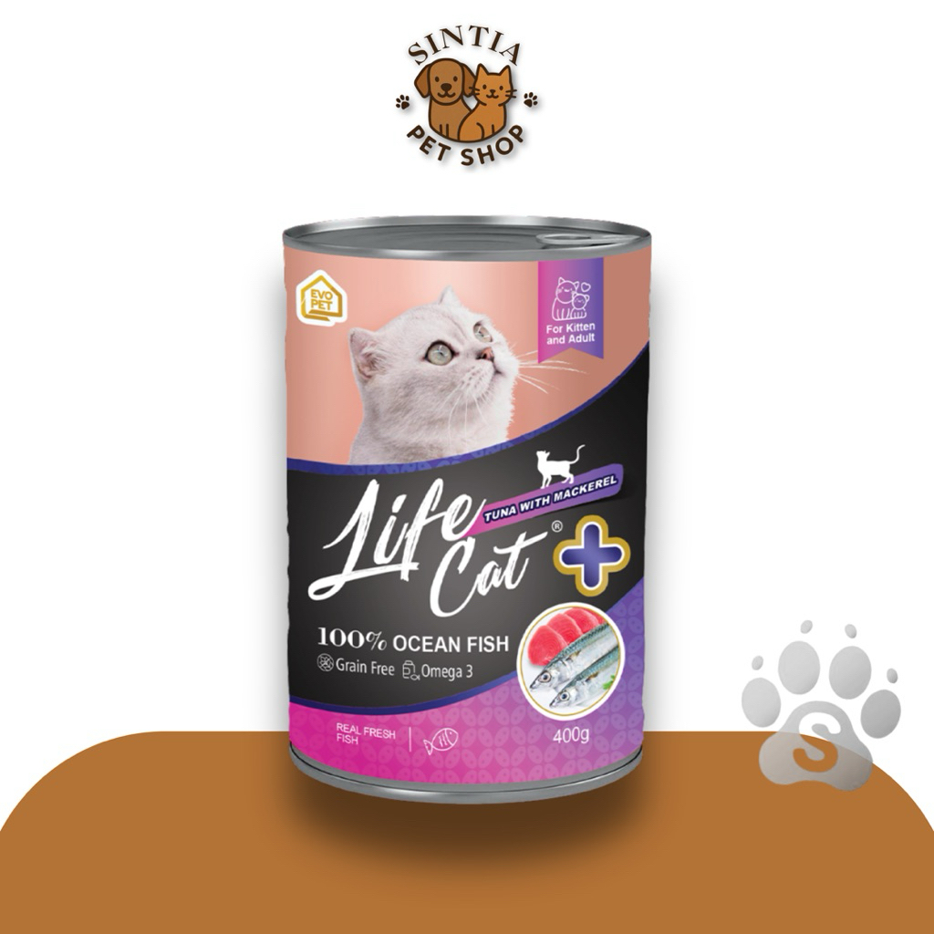 LIFE CAT+ Can All Stages 400 gr Makanan Kucing Berkualitas 100% Ikan Laut Bebas Biji Vitamin Taurin Omega 3