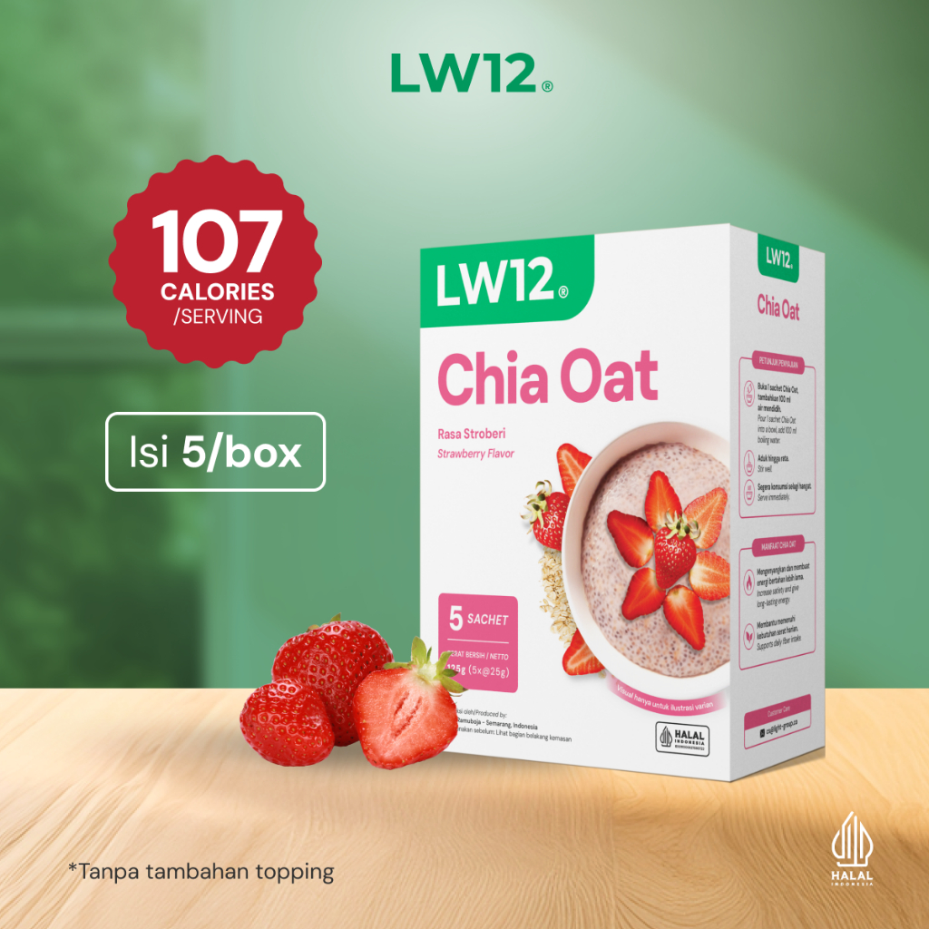 LW12 Chia Oat Strawberry | Oatmeal Diet | Instan | Dengan Buah Asli | Rendah Kalori & Gula | Gluten Free